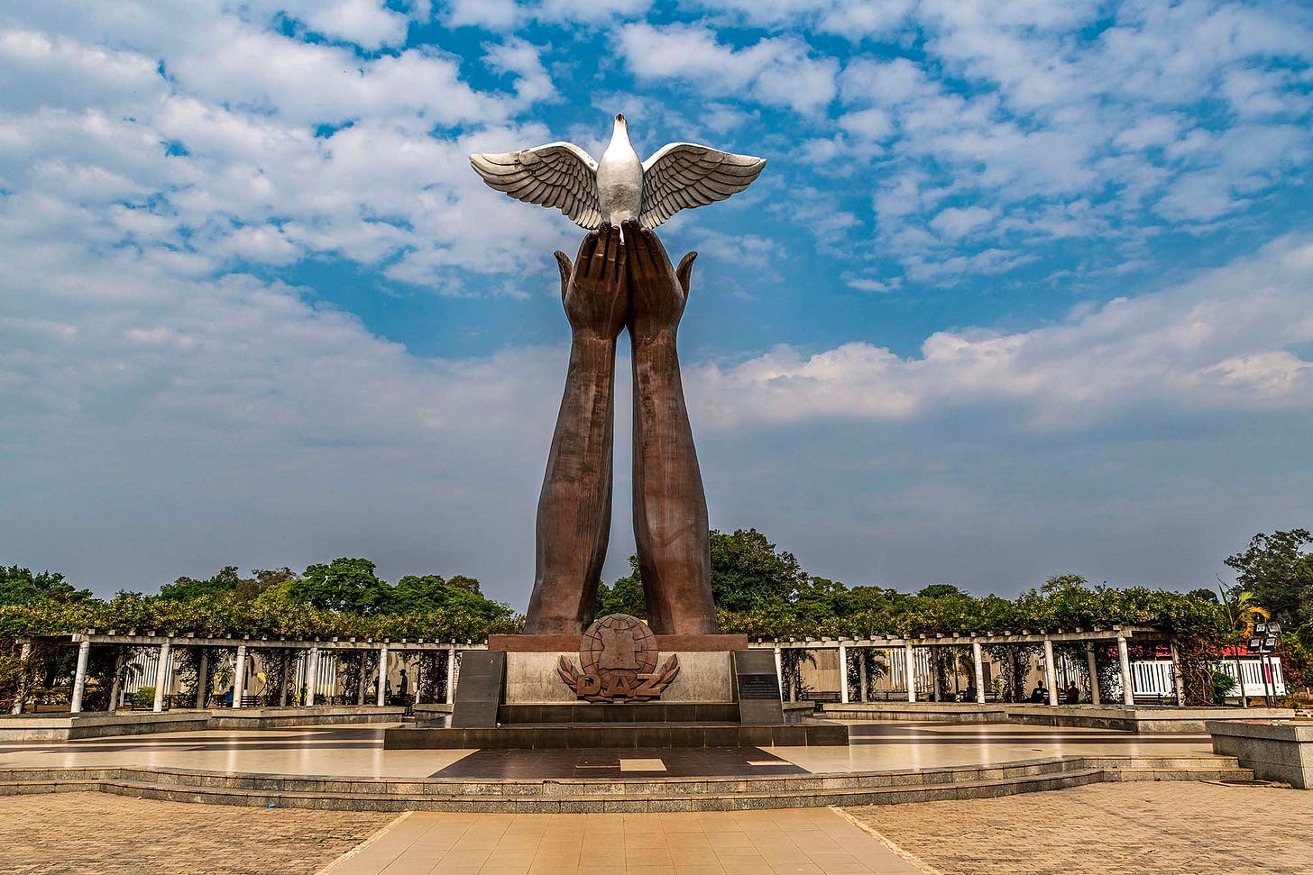 Two giant hands, representing a once-divided country, release a white dove into the sky. Monumento da Paz is meant to evoke Angola’s striving for peace and healing after a brutal 27-year civil war. The 30m-tall structure, made of copper and iron, is located in Luena, the capital of the eastern province of Moxico.
